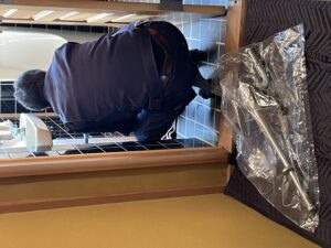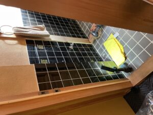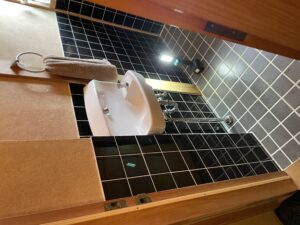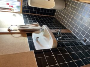壁や床を清掃して新しい手洗器やパイプを取り付けます。