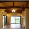 外観は古民家風の2階建のお家です。玄関のフローリングには桜、LDKにも漆喰や無垢材を使用しています。天井は板張りで高い梁見せ天井なので開放感があります。和室にはじゅらくの塗壁で、障子を開けると広縁とつながっています。